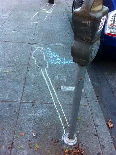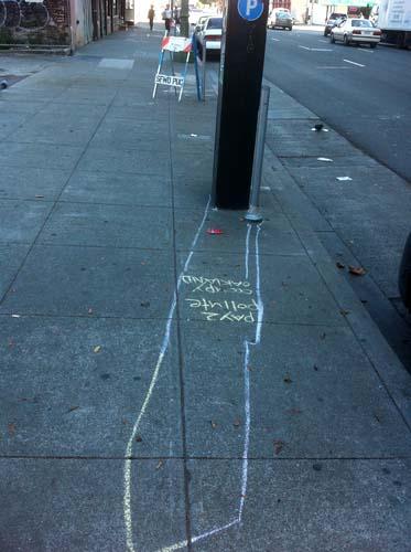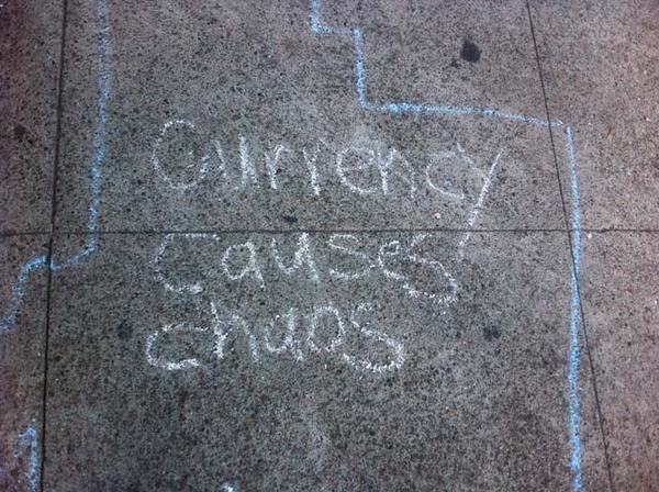 Over the last two weeks, protesters drew and wrote slogans like “Currency causes chaos” on sidewalks, often within the chalk outlines of parking meters, sawhorses and street signs.