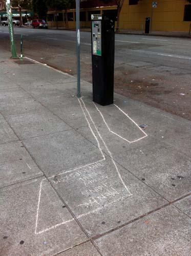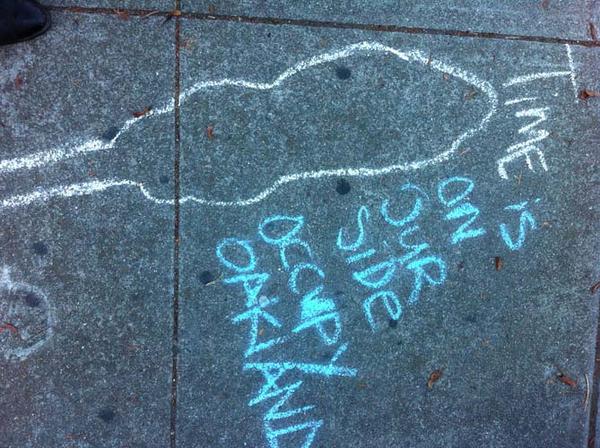 After Oakland police officers made arrests and cleared protesters out of two spots downtown early Tuesday morning, some “ghosts” of the rowdy populist sit ins remained on nearby sidewalks.