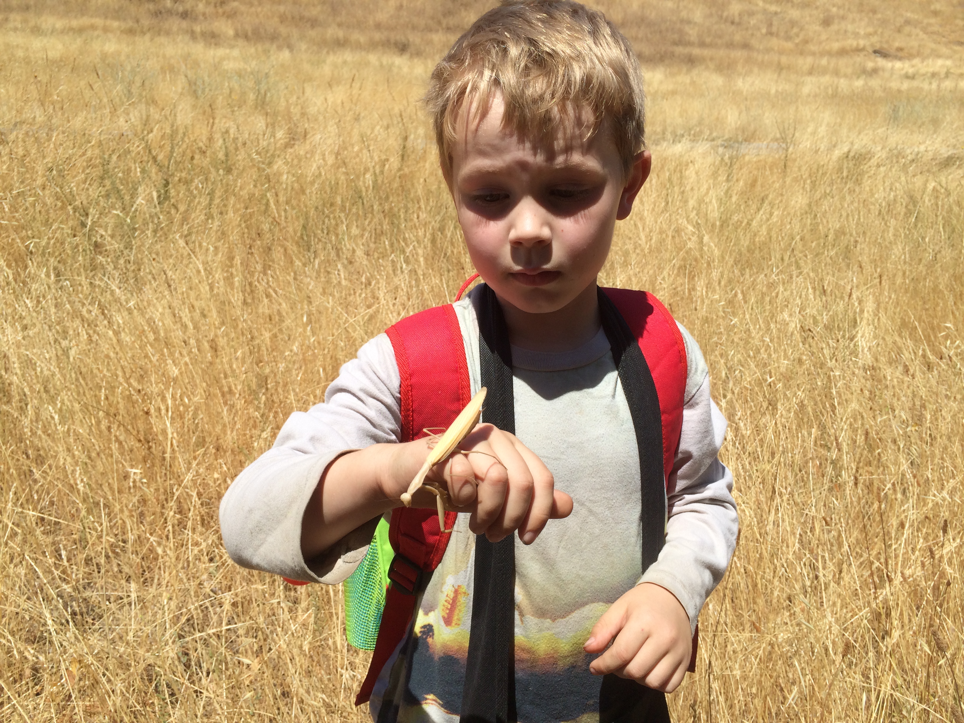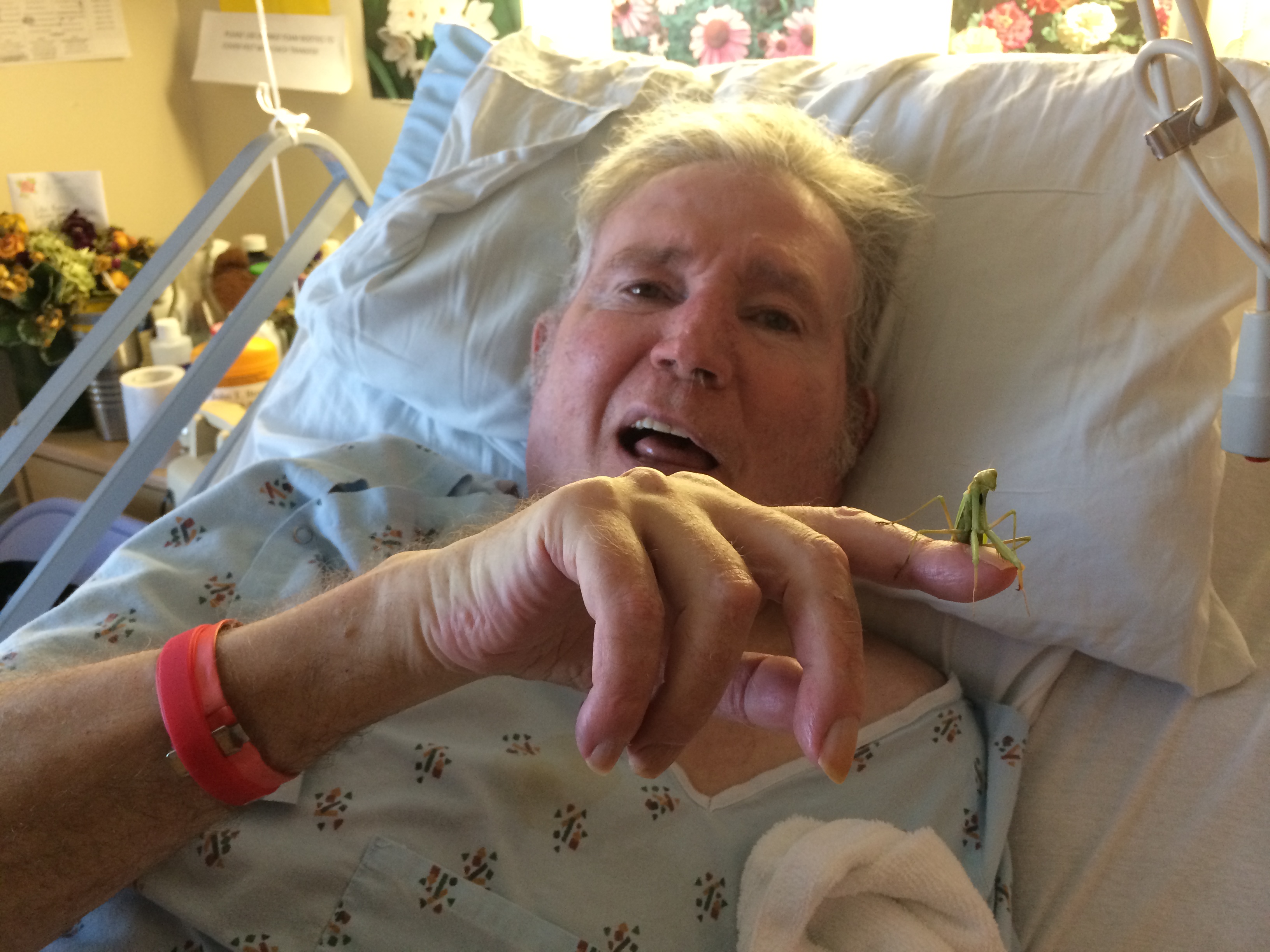 You’ve heard of therapy dogs, right? Well, two weeks ago Kieran and I caught half a dozen praying mantises in Briones Regional Park. On the way home, we stopped by my father’s nursing home in El Sobrante and introduced him to some of the insects. He had a great time and laughed harder than I remember him laughing in years. Therapy dogs require the right temperament and years of training to be certified. But these Mantis religiosa were ready to provide tickling and therapy right away, with no training! Could this be a new business venture?