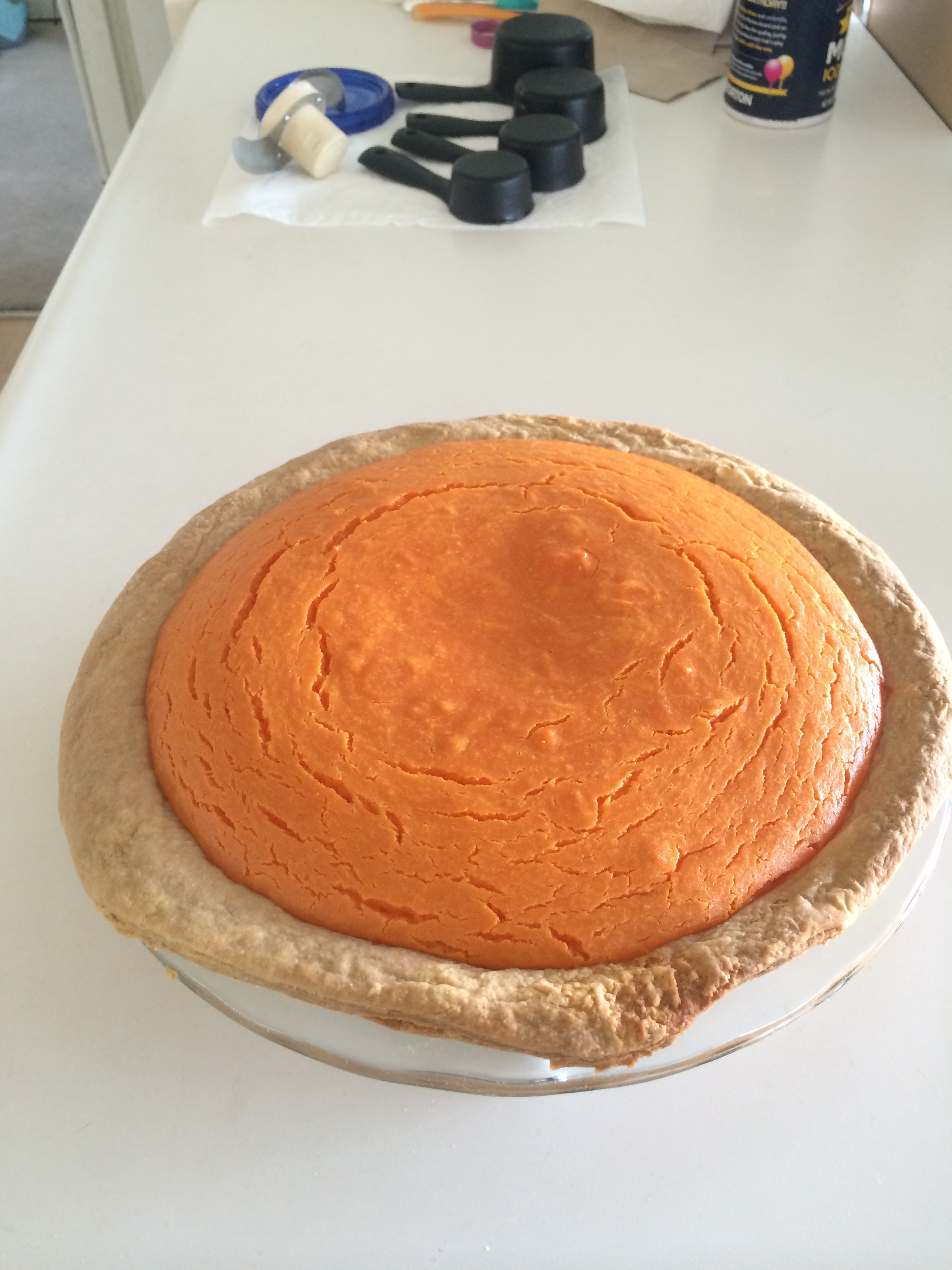 Pie done baking at 10:10. A big pie like this takes 75 minutes or more at 350 degrees F.
