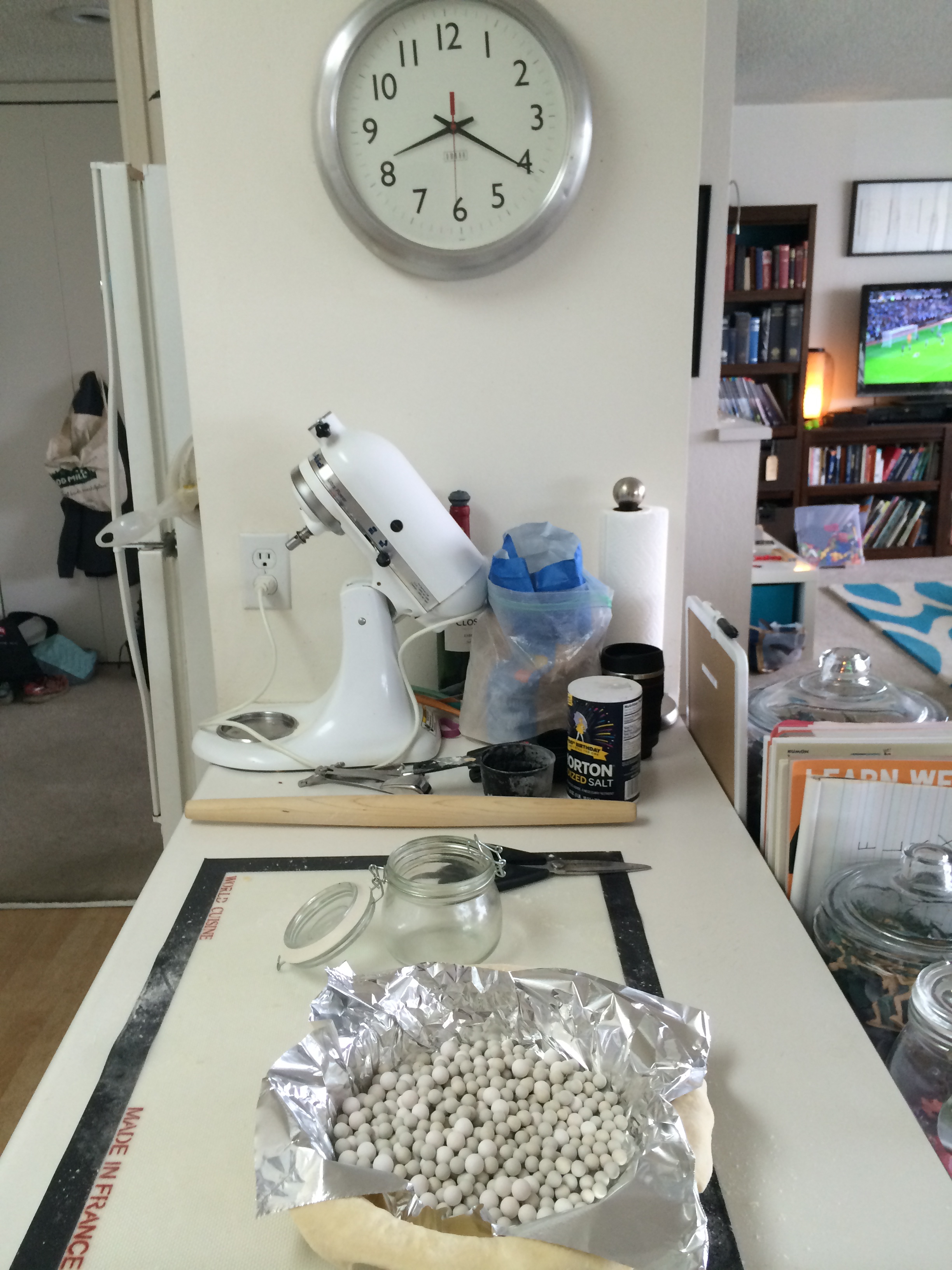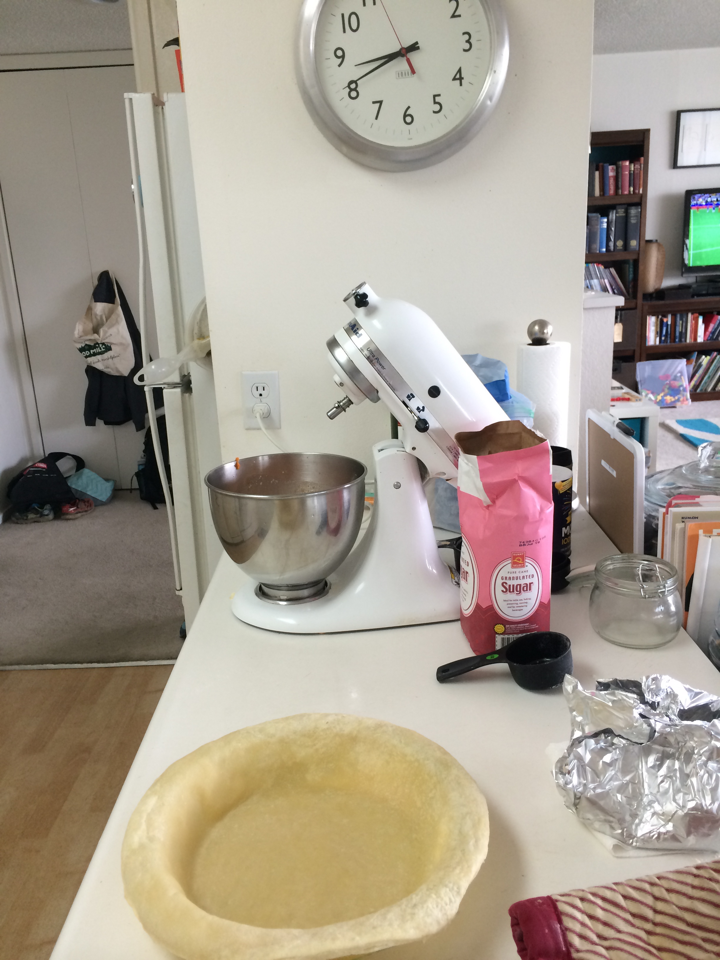 I added foil and ceramic weights to keep the crust from bubbling up while baking it a little.