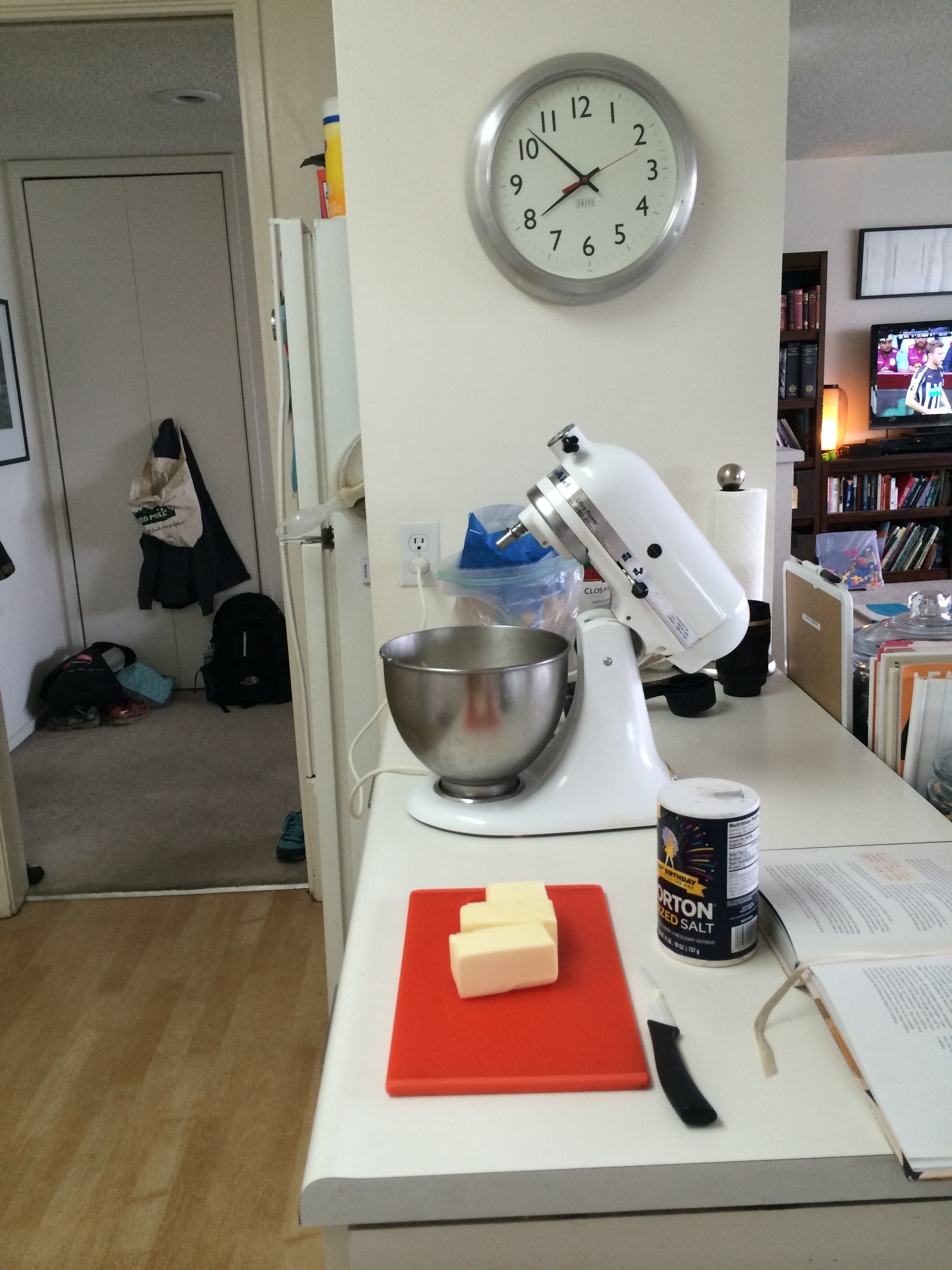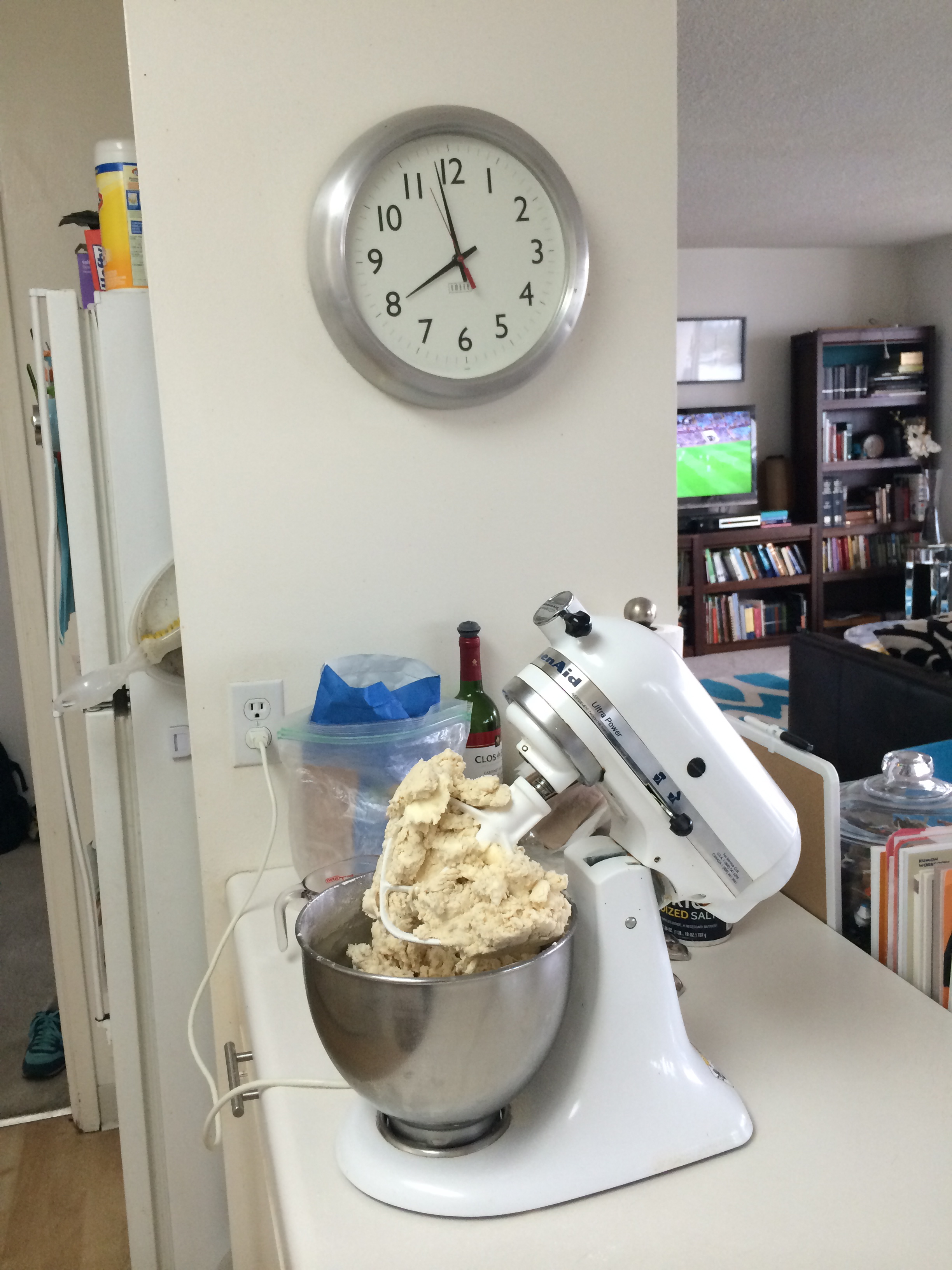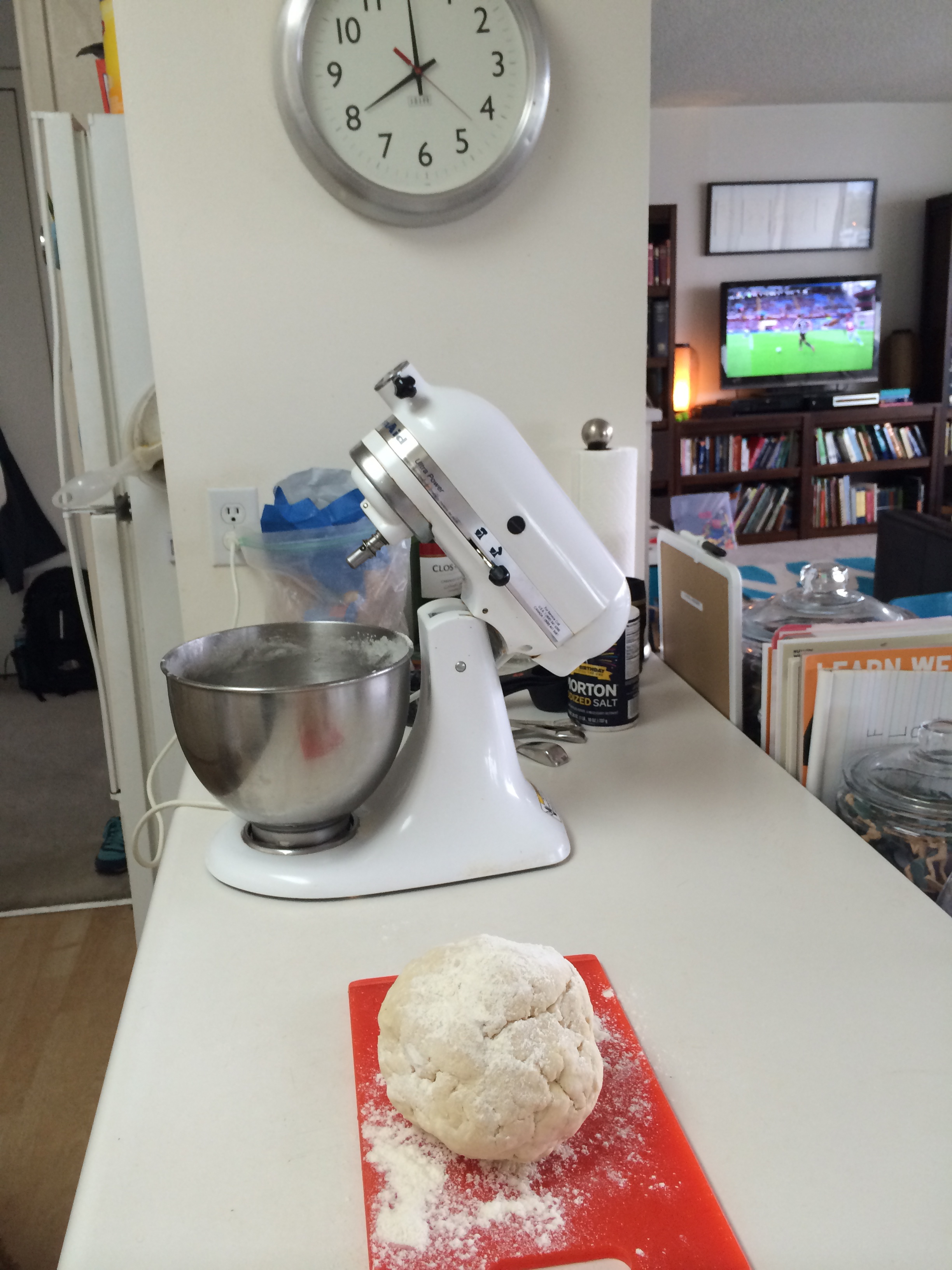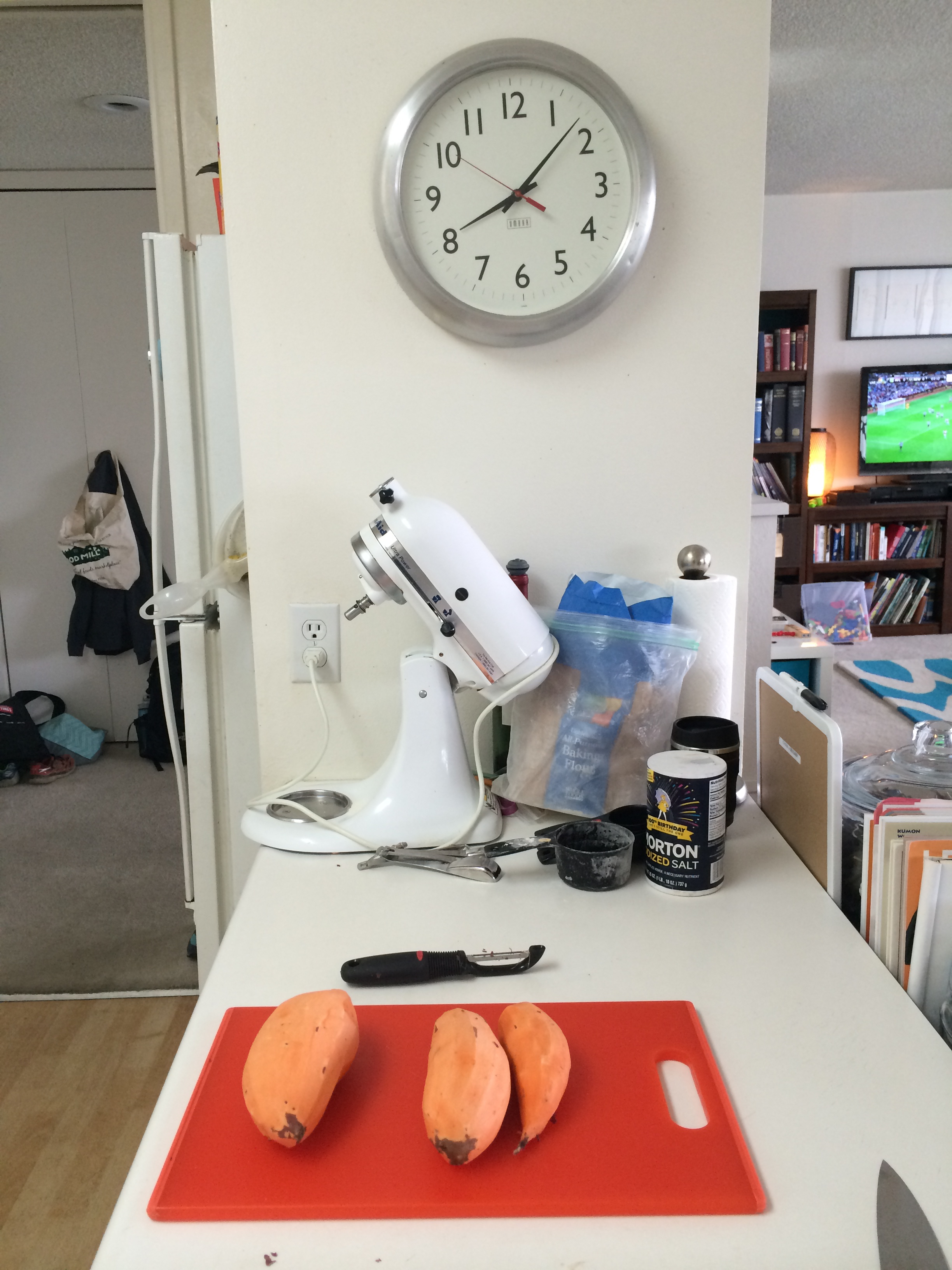 The dough was ready to roll. I set it aside at 8:00 sharp to start on the potatoes.