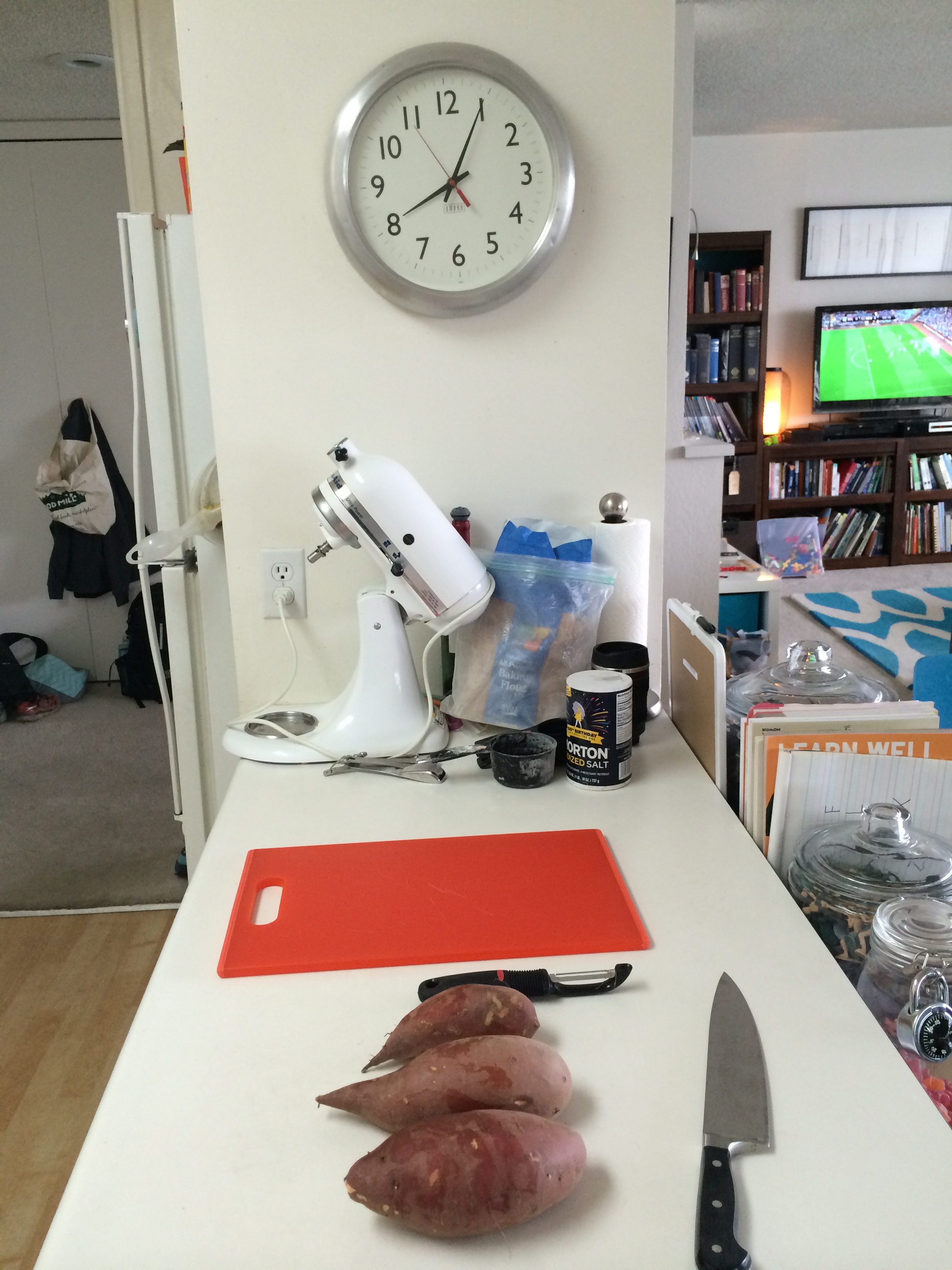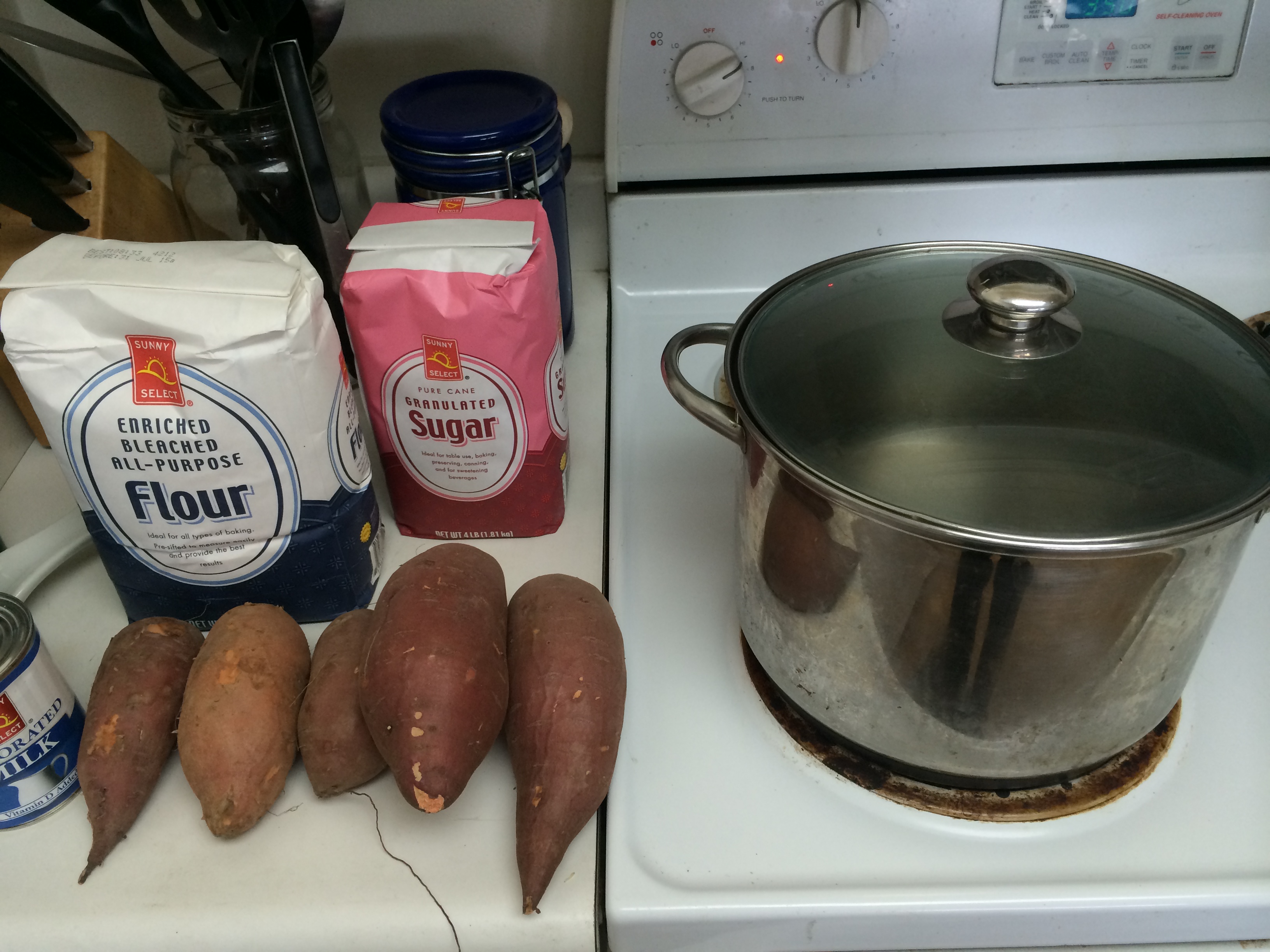 My son had a school picnic today, and being a typical tired, stressed out parent, I didn’t pay attention until the last minute. So about 7:30 this morning I realized we were supposed to bring a dessert. I decided to bake a sweet potato pie using my grandmother Iuka’s recipe from Arkansas. But how fast could I do it?