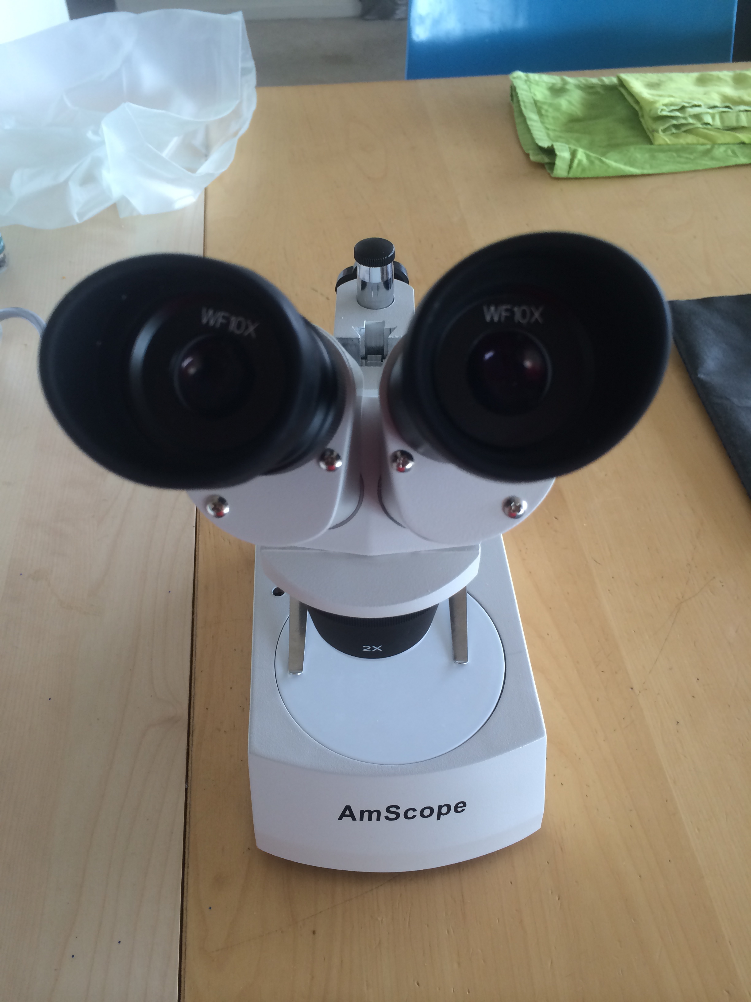 I took a couple photos using my iPhone camera through the eyepiece of the microscope. Here they are under 10 power lenses.