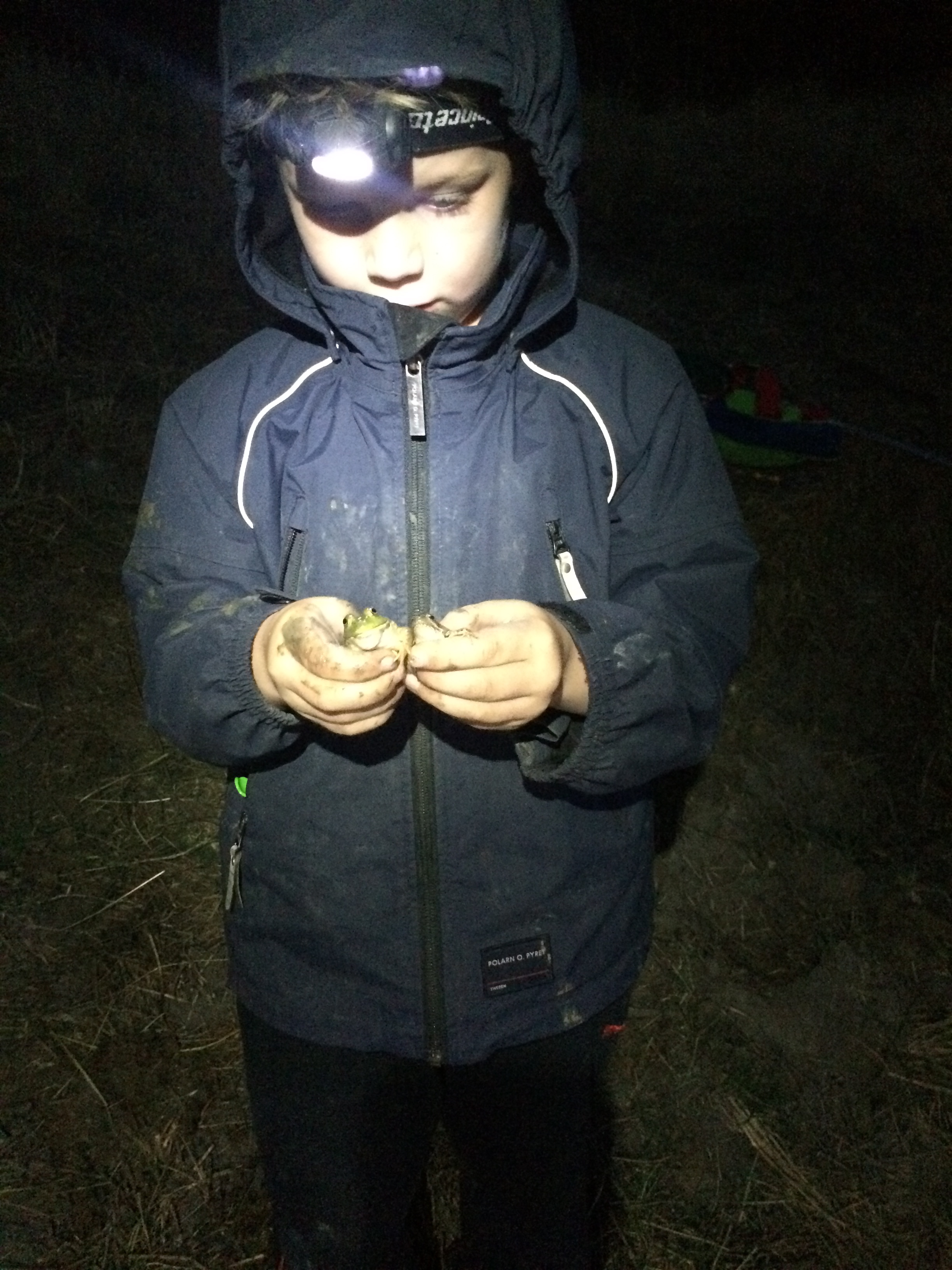The lights reflect from their eyes and also seem to mesmerize them, which makes it a bit easier to catch them.