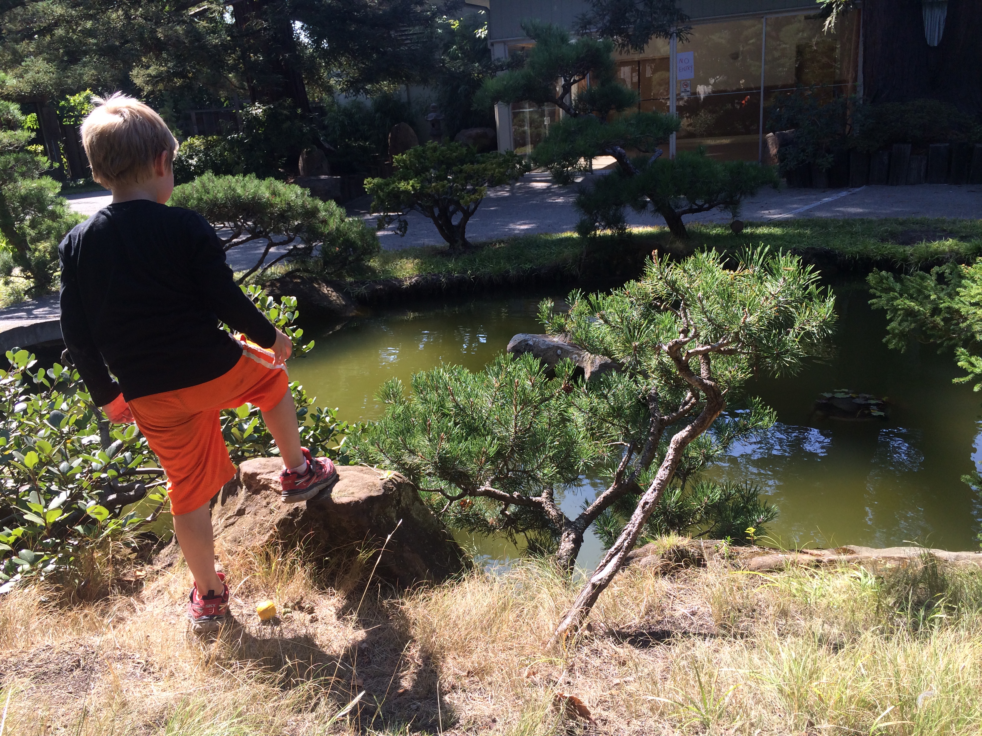 After school today, Kieran and I returned to Oakland’s lovely Lakeside Garden. We spent a lot of time in the Japanese Garden with its waterfall, then wandered again through the Palmetum, where we had so much fun on our previous visit.