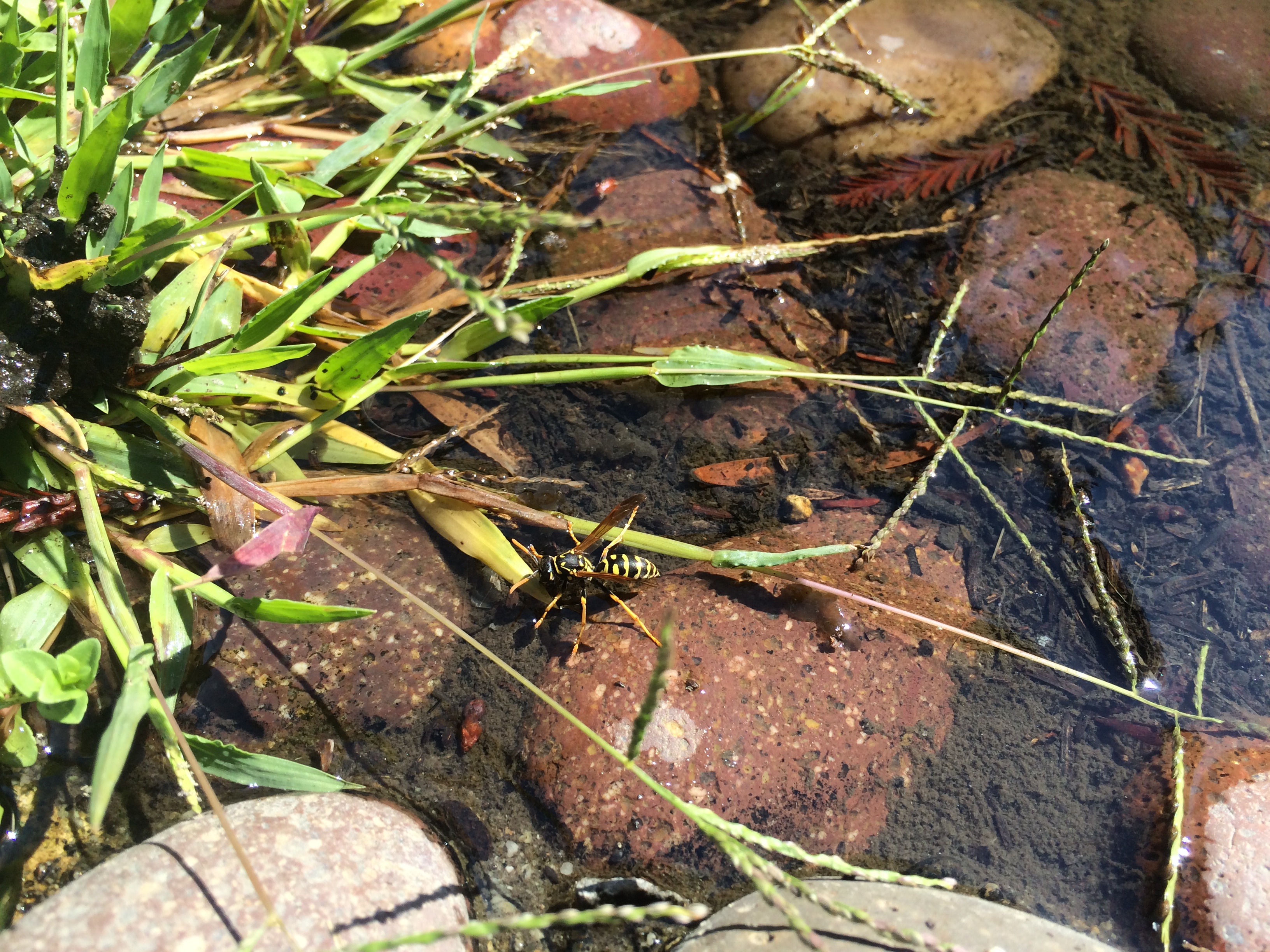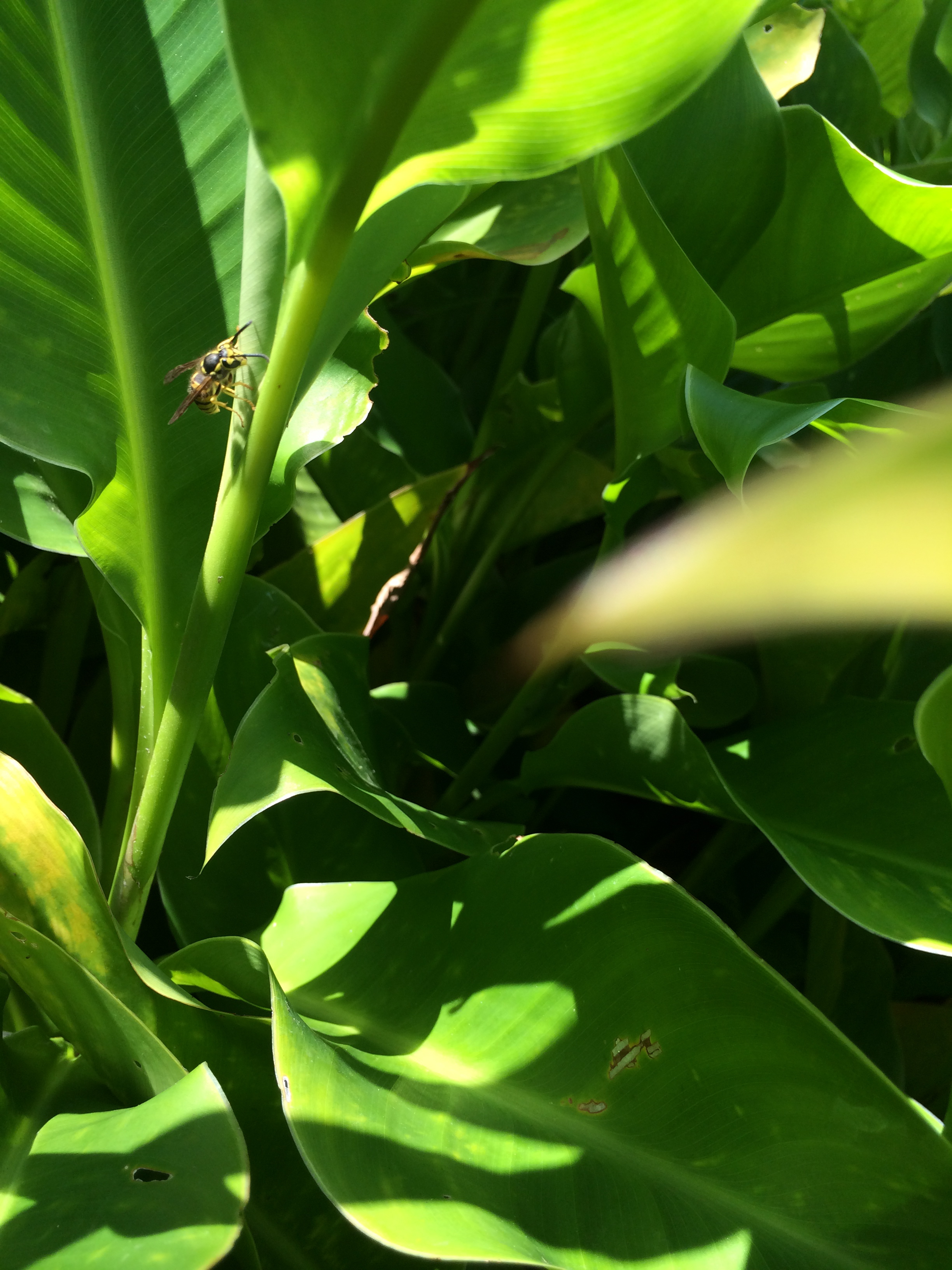 Sceliphron caementarium, a yellow-and-black mud dauber.