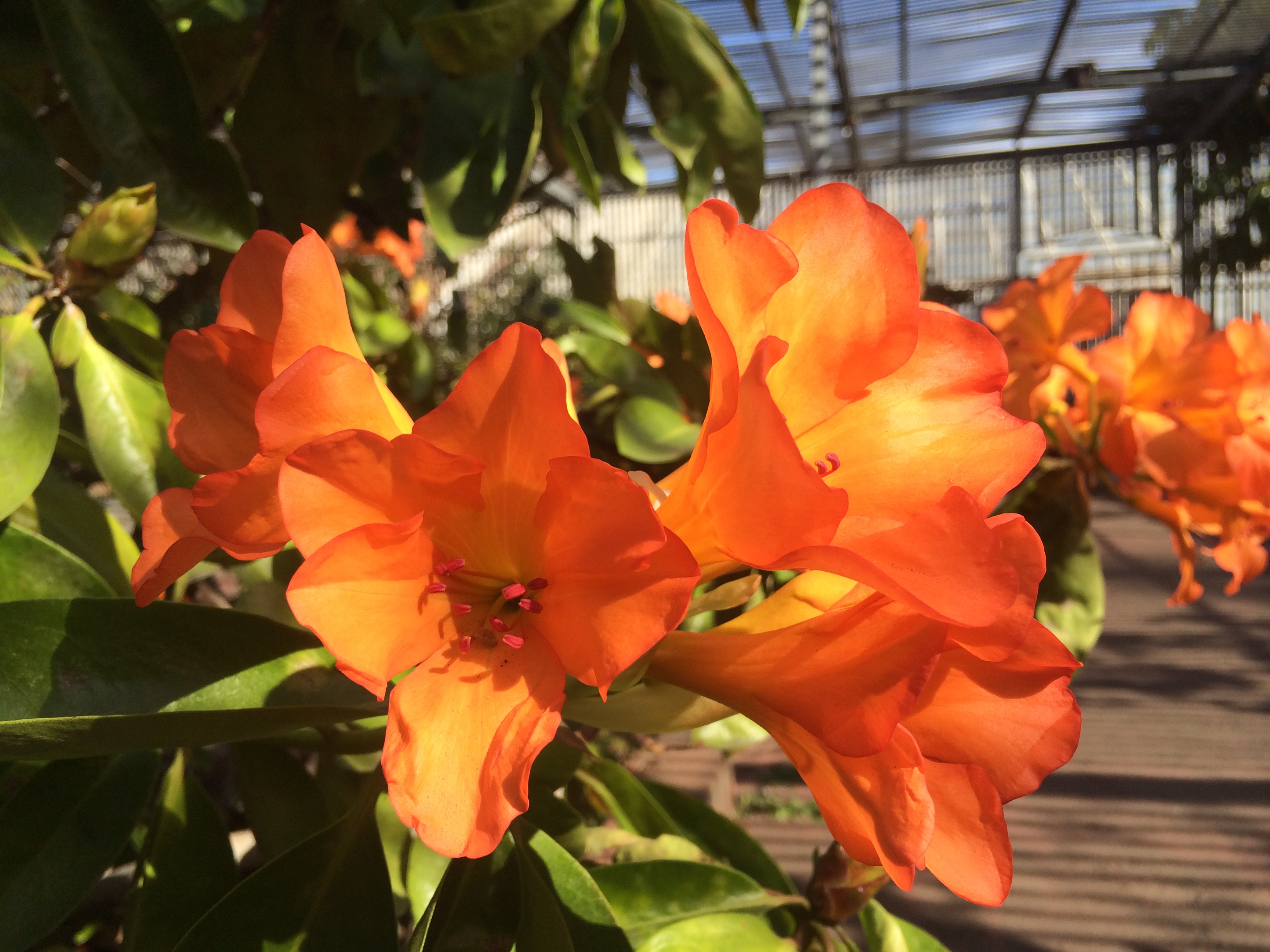 Oakland is just temperate enough to have an open-air Vireya garden. It does have a roof but is not a closed, climate-controlled greenhouse.