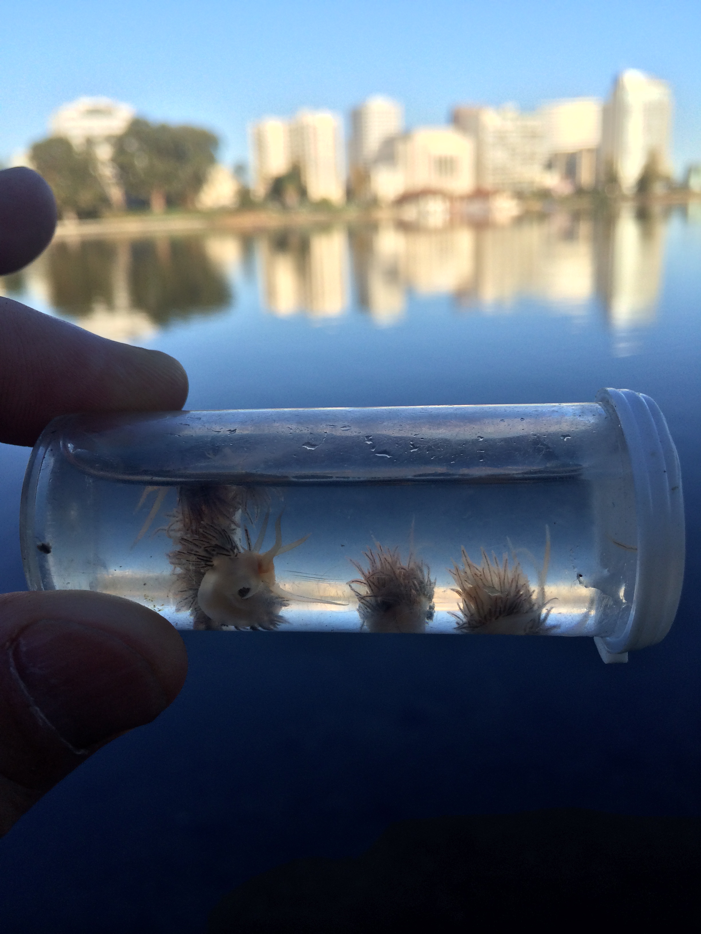 Soon he had caught a half dozen or more of the weird, frilly sea slugs.