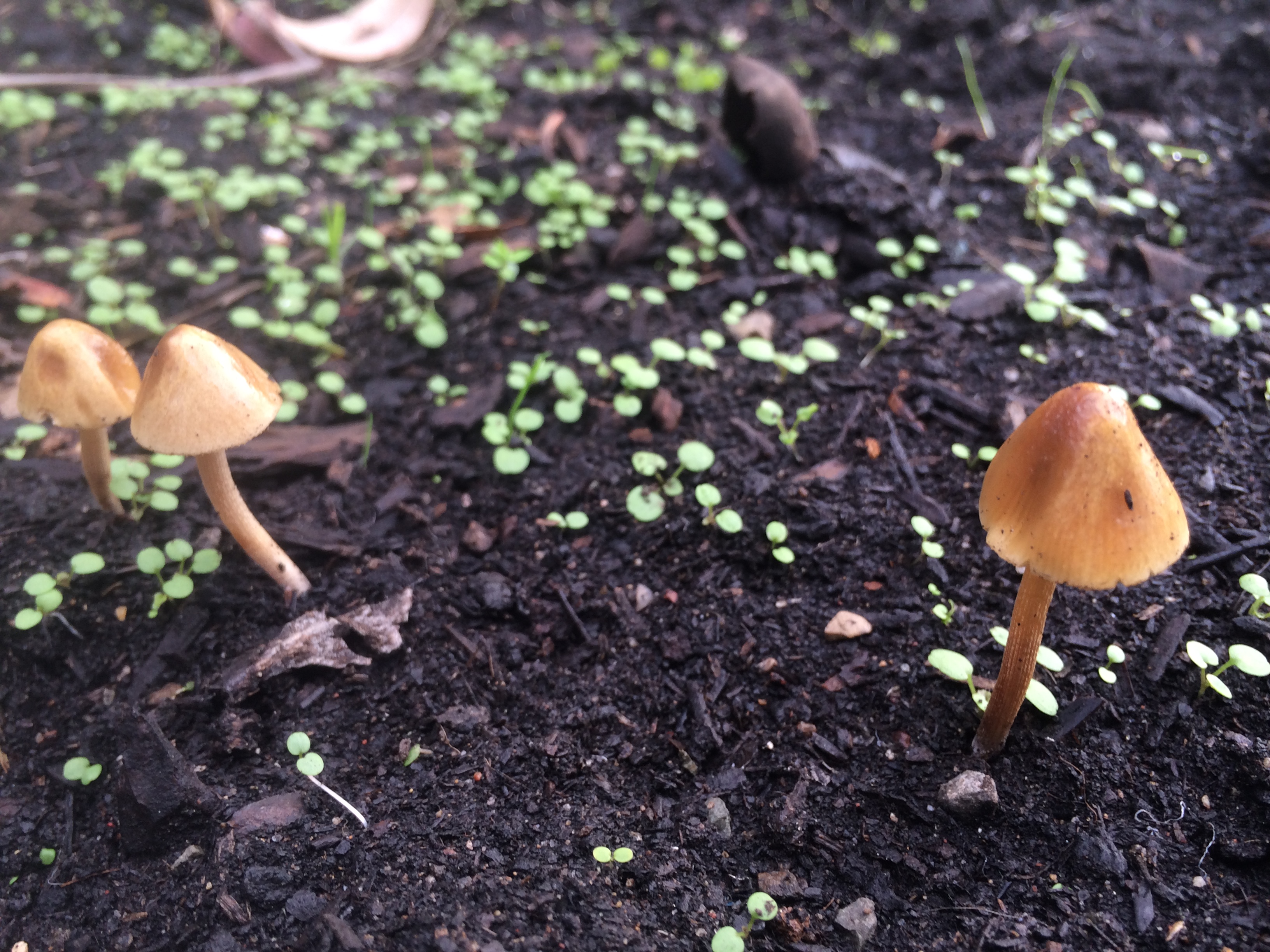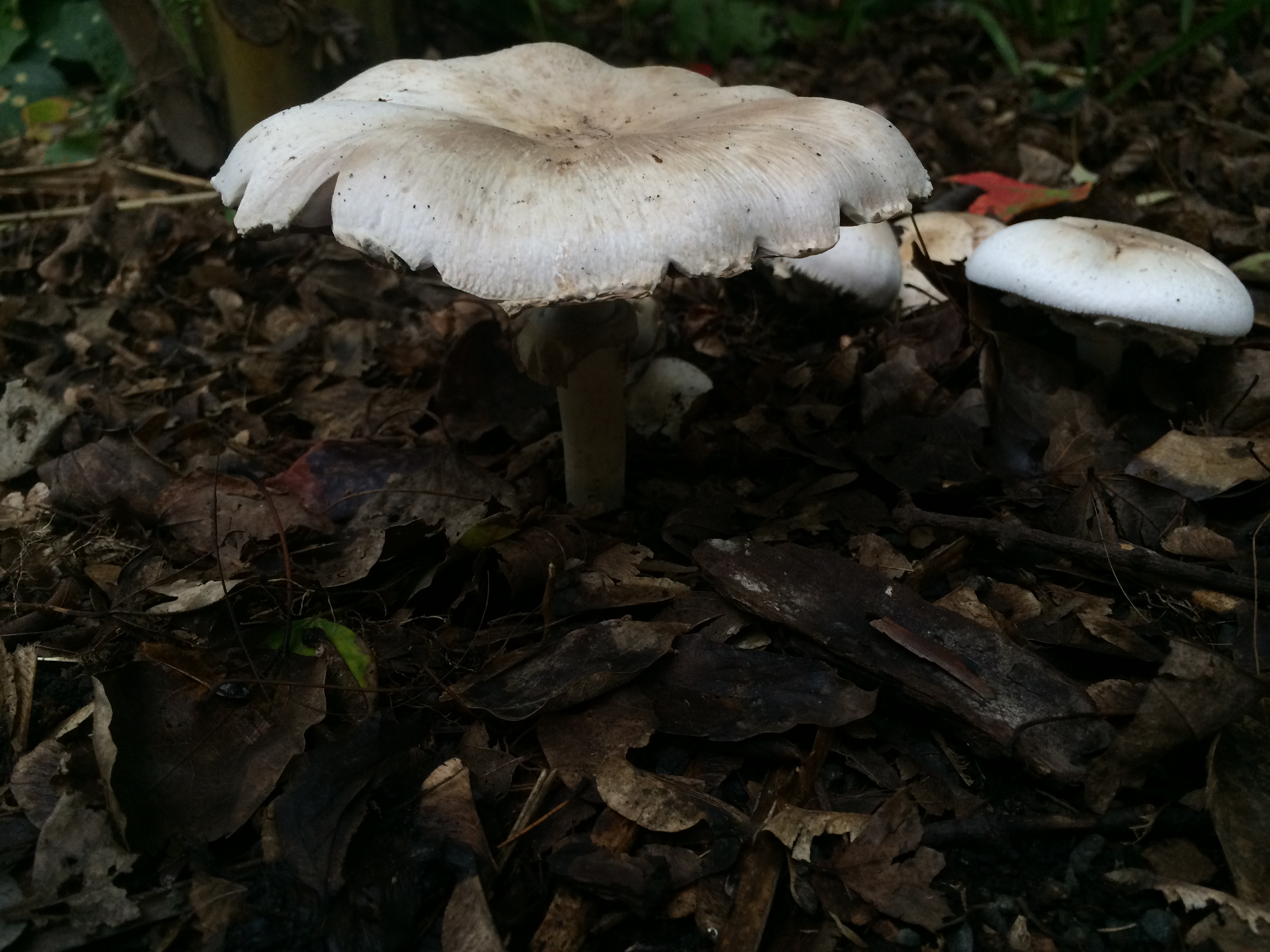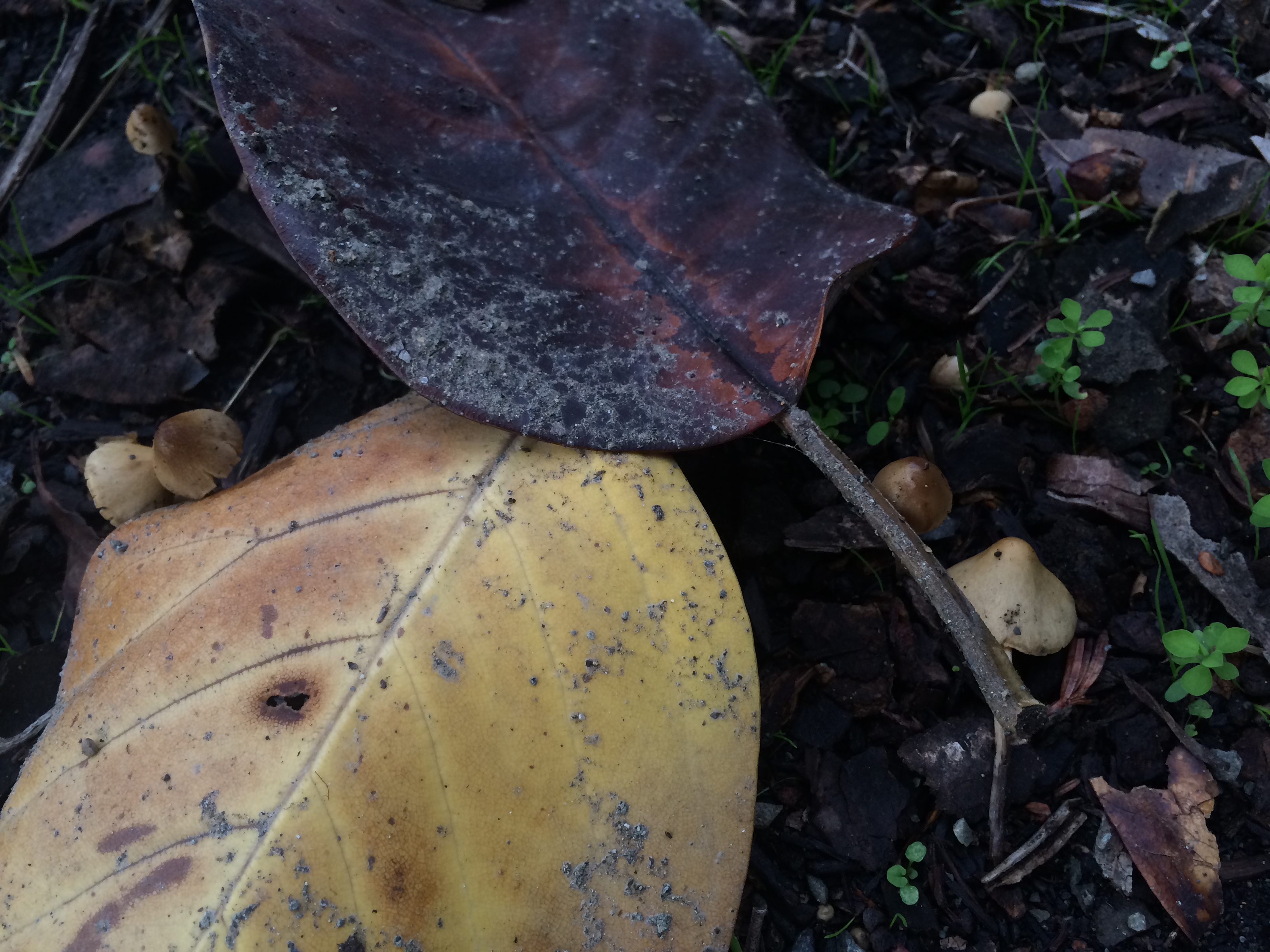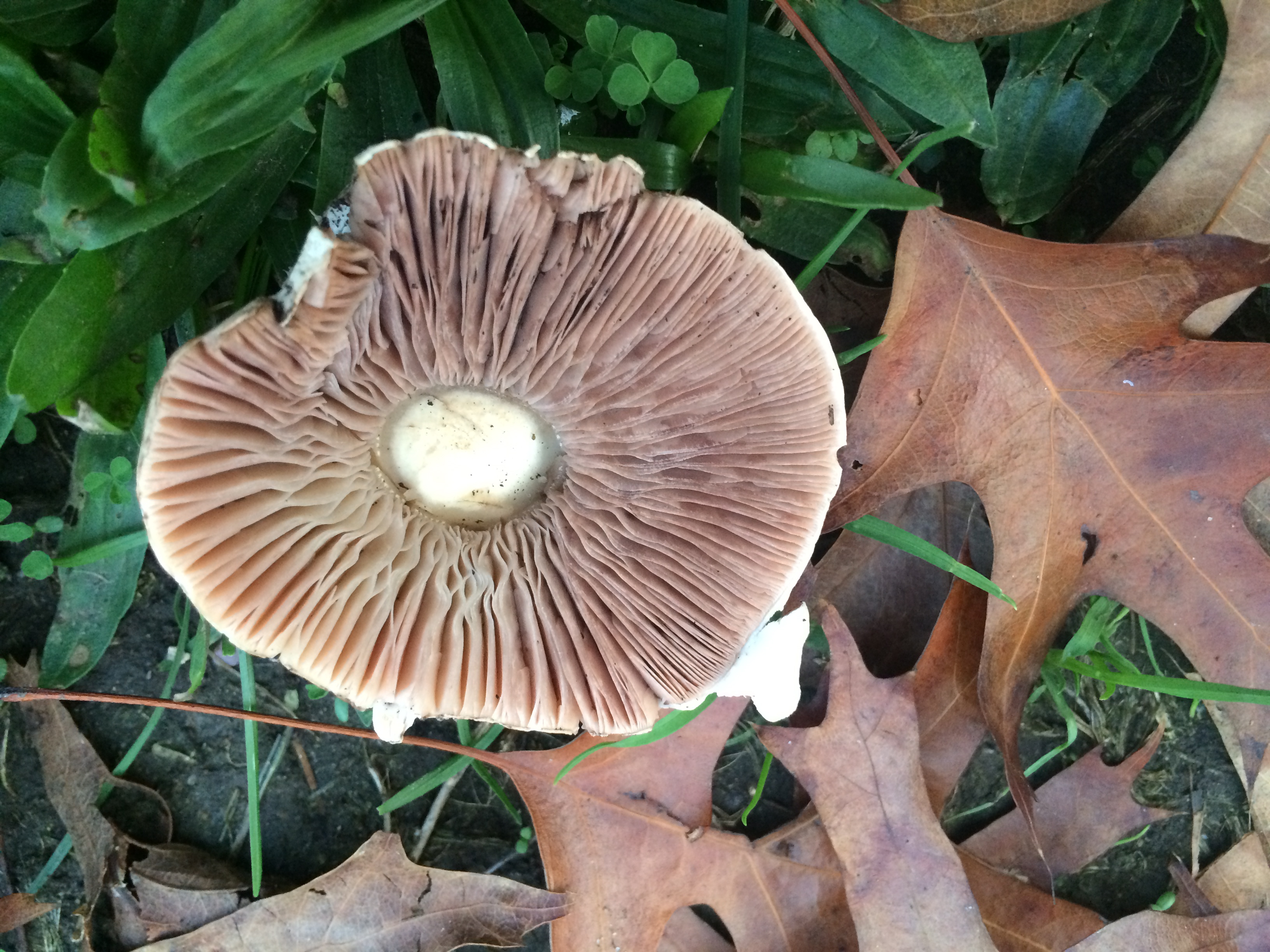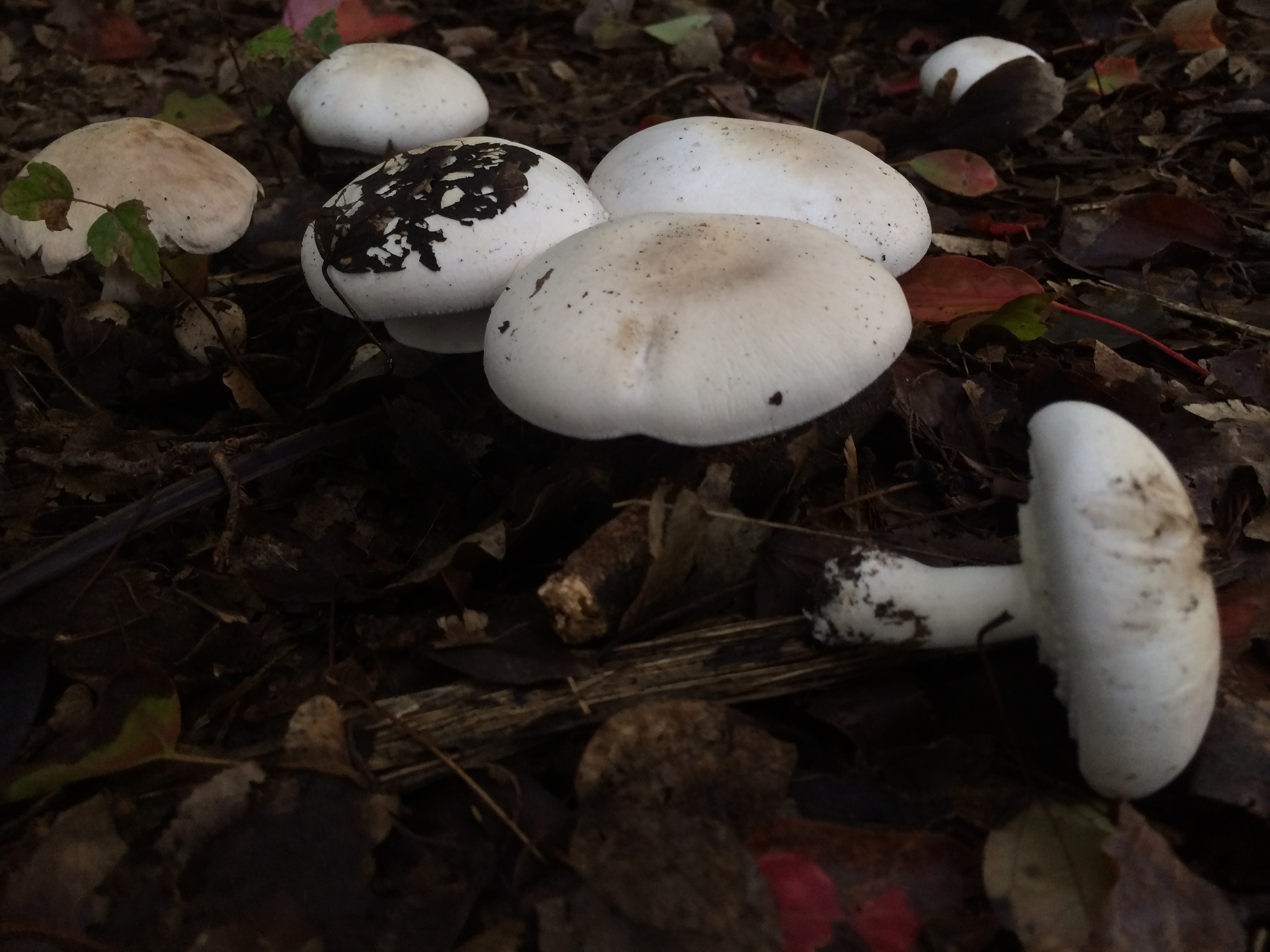It rained last night, and this afternoon on our way home from school, Kieran and I stopped, as we nearly always do, in the lovely Lakeside Garden. Everything was still wet from the rains, and Kieran immediately spotted some mushrooms with his sharp young eyes. For an hour, as the setting sun pulled the light out of the park, we went everywhere, peering closely at the ground seeking more mushrooms. We found plenty of them, some already out and open, like little umbrellas, others still just nudging their way out of the grass or fallen leaves.