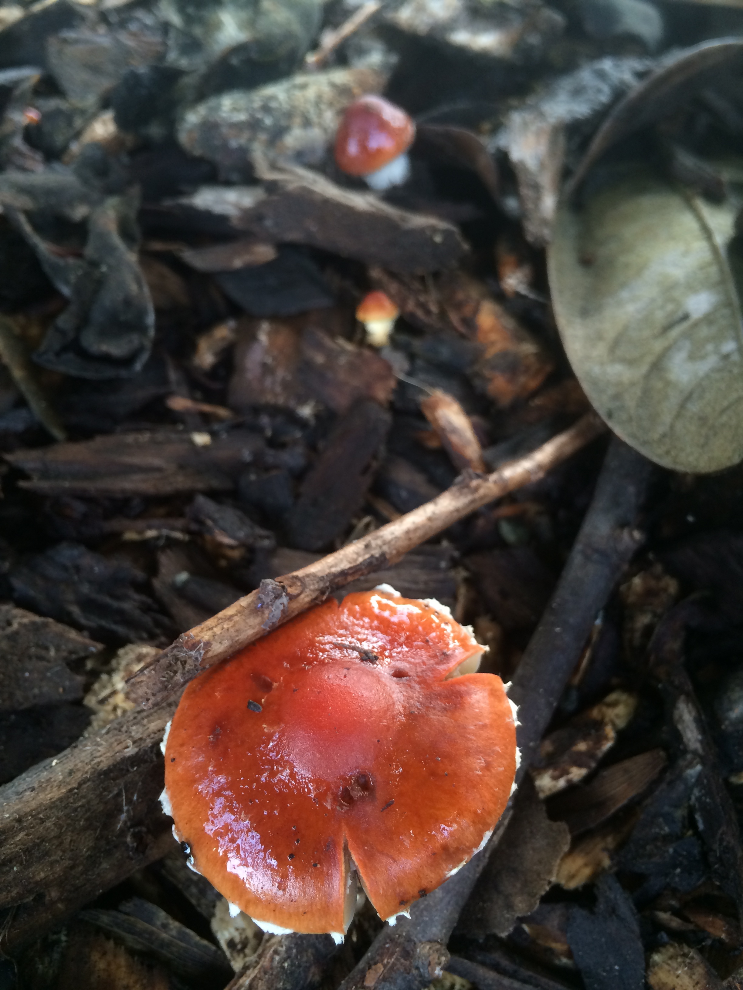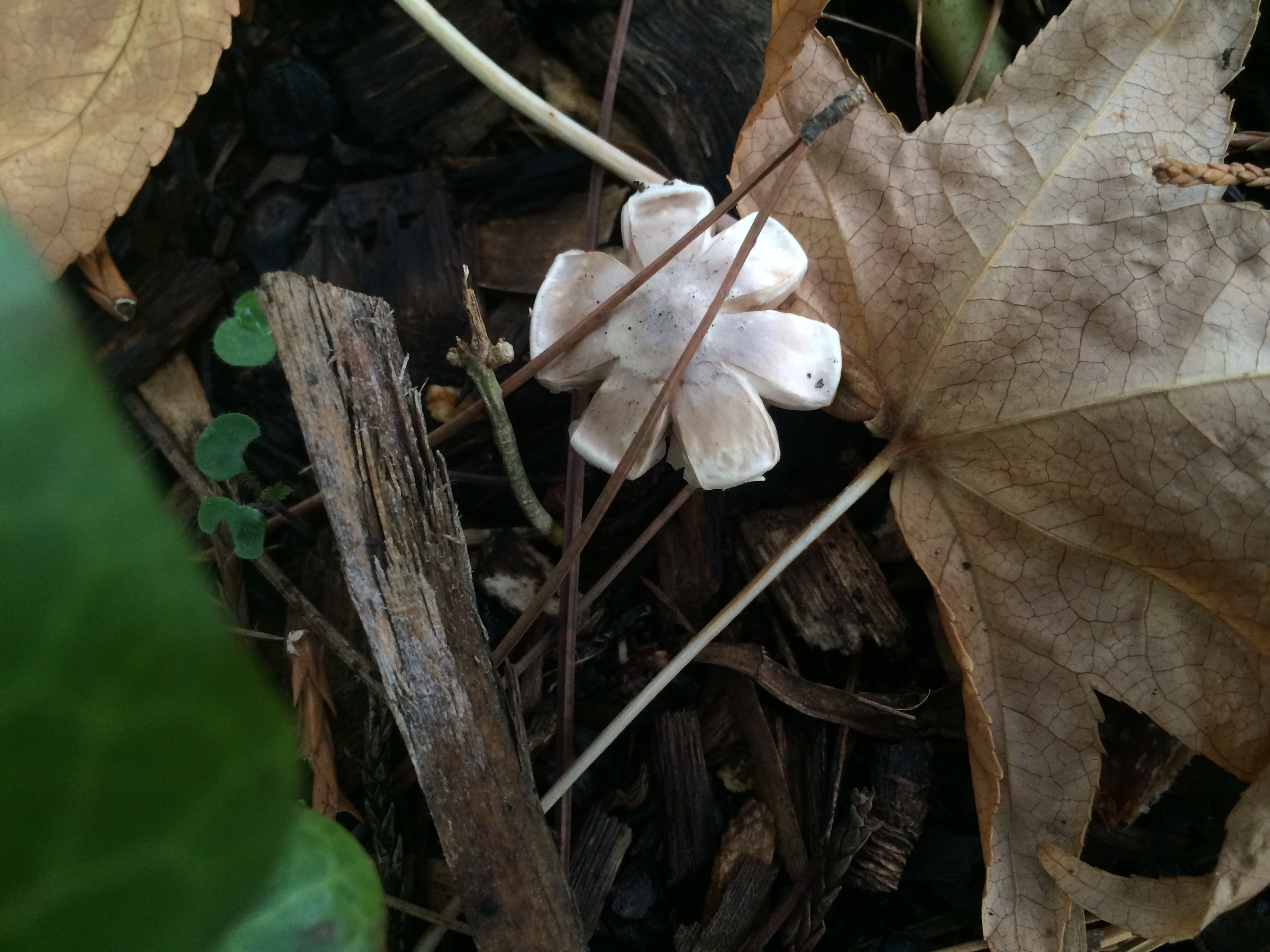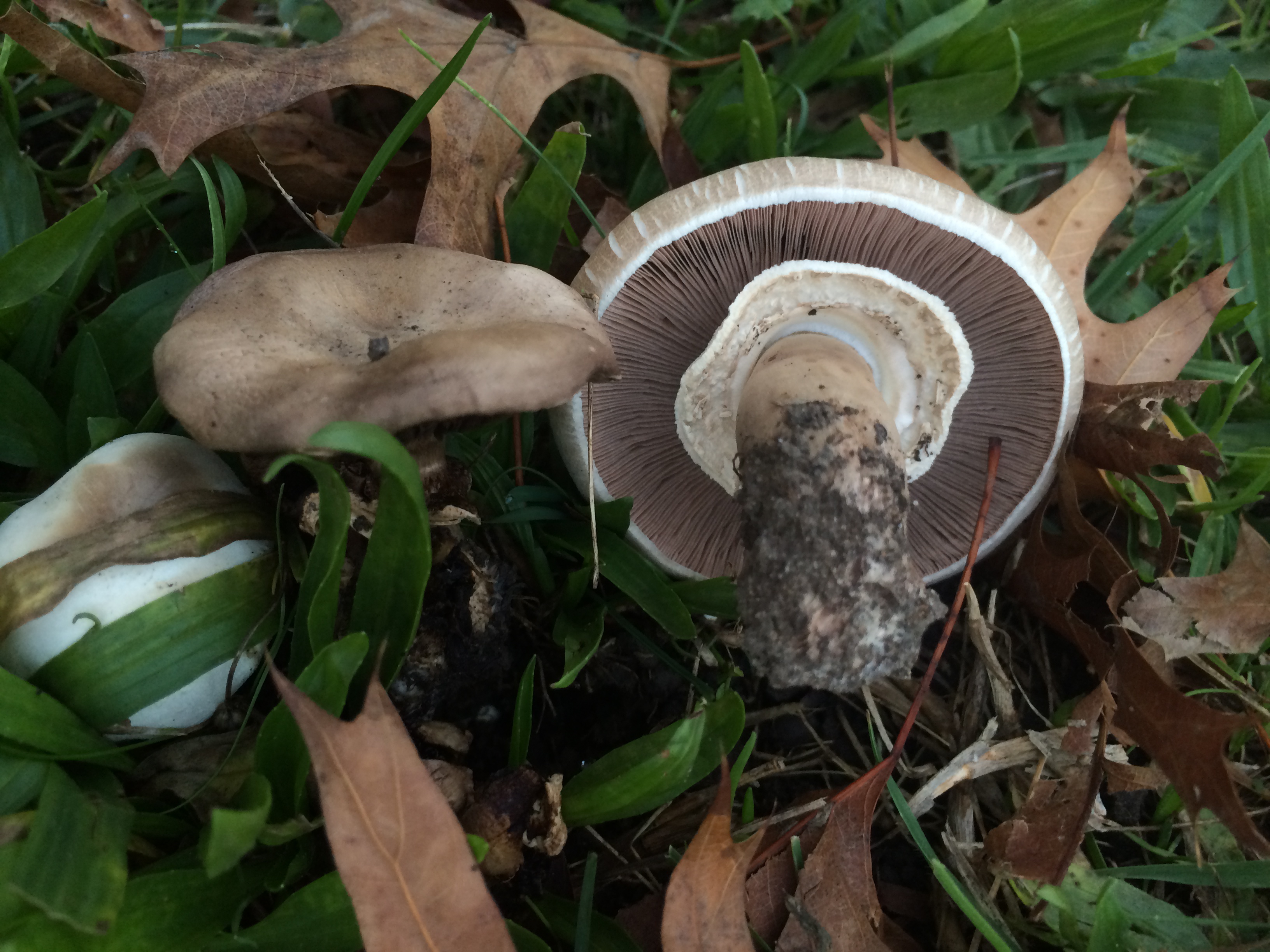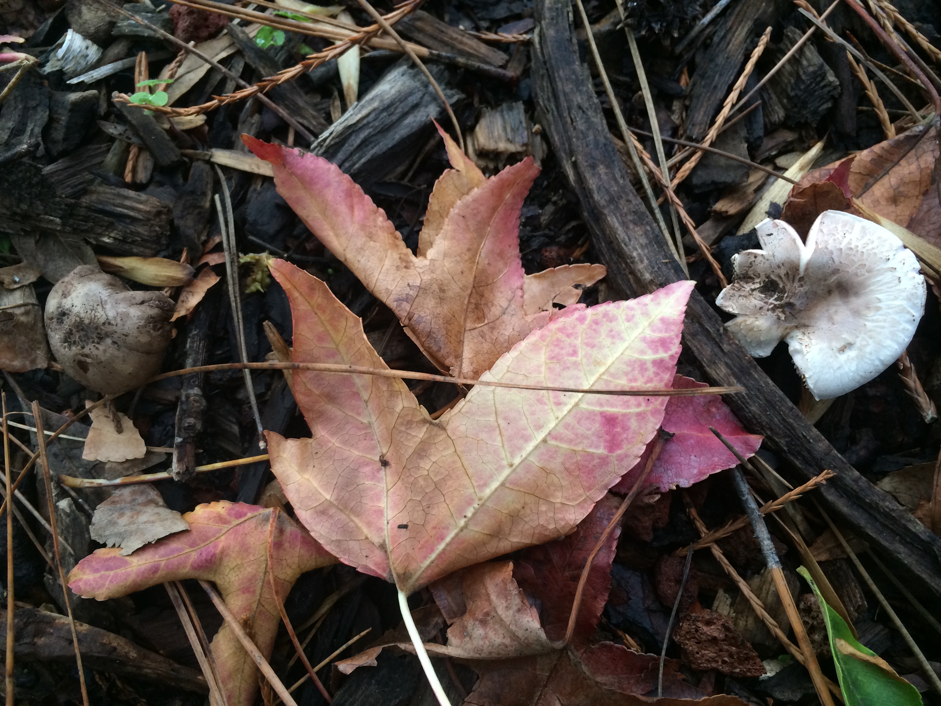 It rained last night, and this afternoon on our way home from school, Kieran and I stopped, as we nearly always do, in the lovely Lakeside Garden. Everything was still wet from the rains, and Kieran immediately spotted some mushrooms with his sharp young eyes. For an hour, as the setting sun pulled the light out of the park, we went everywhere, peering closely at the ground seeking more mushrooms. We found plenty of them, some already out and open, like little umbrellas, others still just nudging their way out of the grass or fallen leaves.