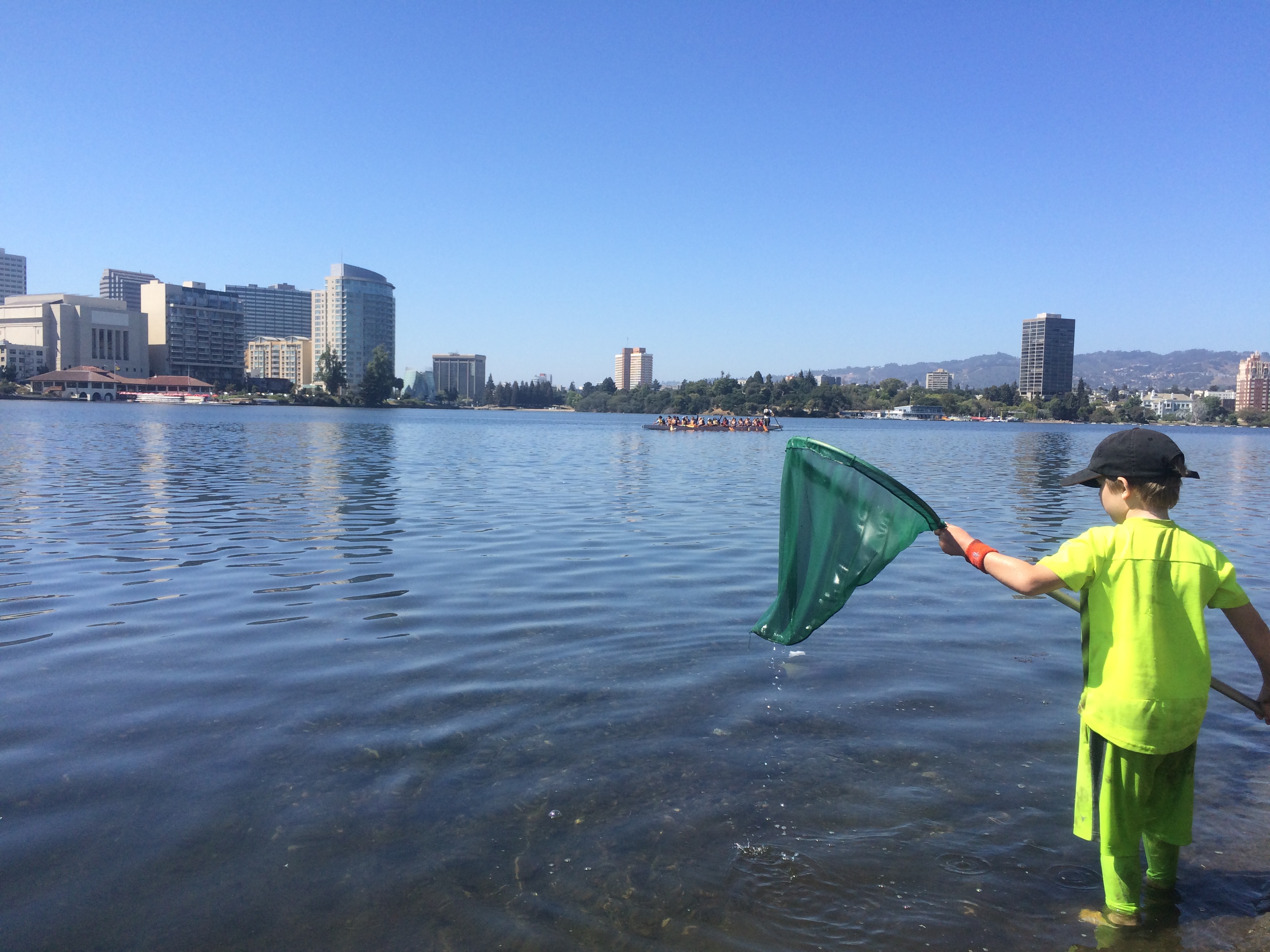 San Francisco Bay has been invaded these last two weeks by thousands of fat “sea hares” (Aplysia californica). They’re giant, docile, herbivorous sea slugs that eat red marine algae. When disturbed, they expel vivid purple ink in a cloud. We first found them last week at Crab Cove in Alameda, in a long lagoon cut off on the beach by low tide. Later, we found them right here in Lake Merritt. Aplysia are hermaphroditic, and often mate in so-called “Roman circles,” with each one connected to two others, front and behind. They lay millions of microscopic eggs on long strands of yellow string that looks like spaghetti. Each egg strand can be, if uncoiled, a third of a mile long! That can contain 86 million eggs!