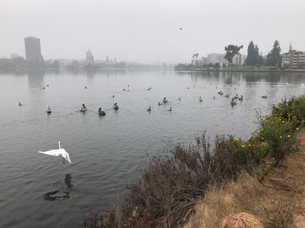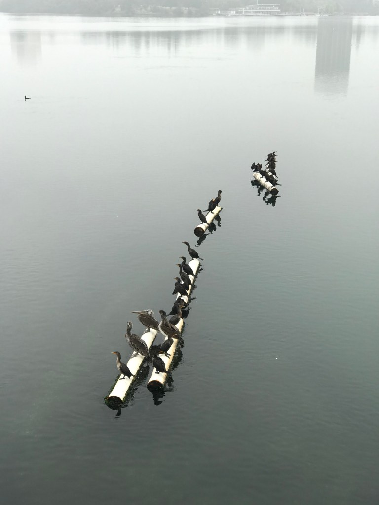 The pelicans, and their fellow fish-eating birds — cormorants, egrets and others — were out again today. I got some good footage in slow motion of the pelicans diving. Note how, just before they hit the water, they pull their enormous wings all the way back, like a fighter jet going supersonic. These “free shows” are one of the best things about living by the lake, though there are — especially lately — plenty of drawbacks.