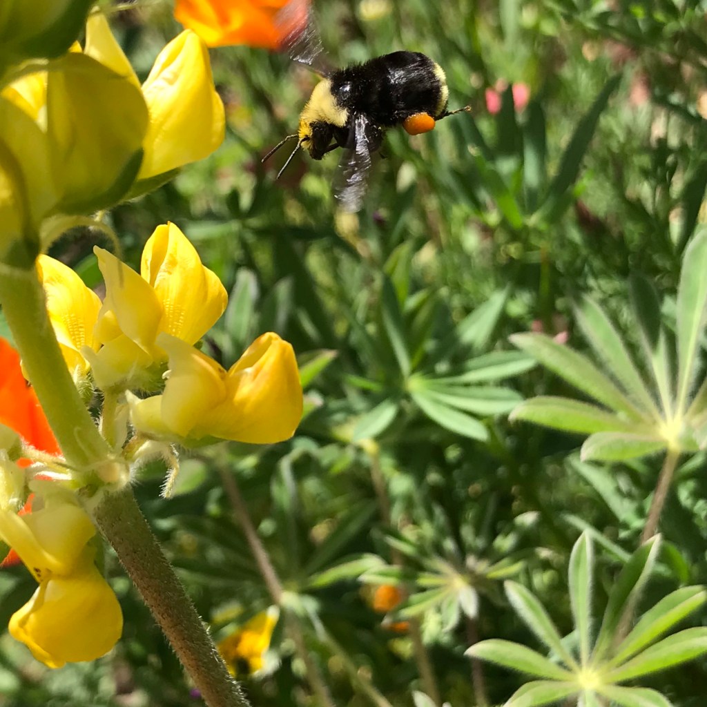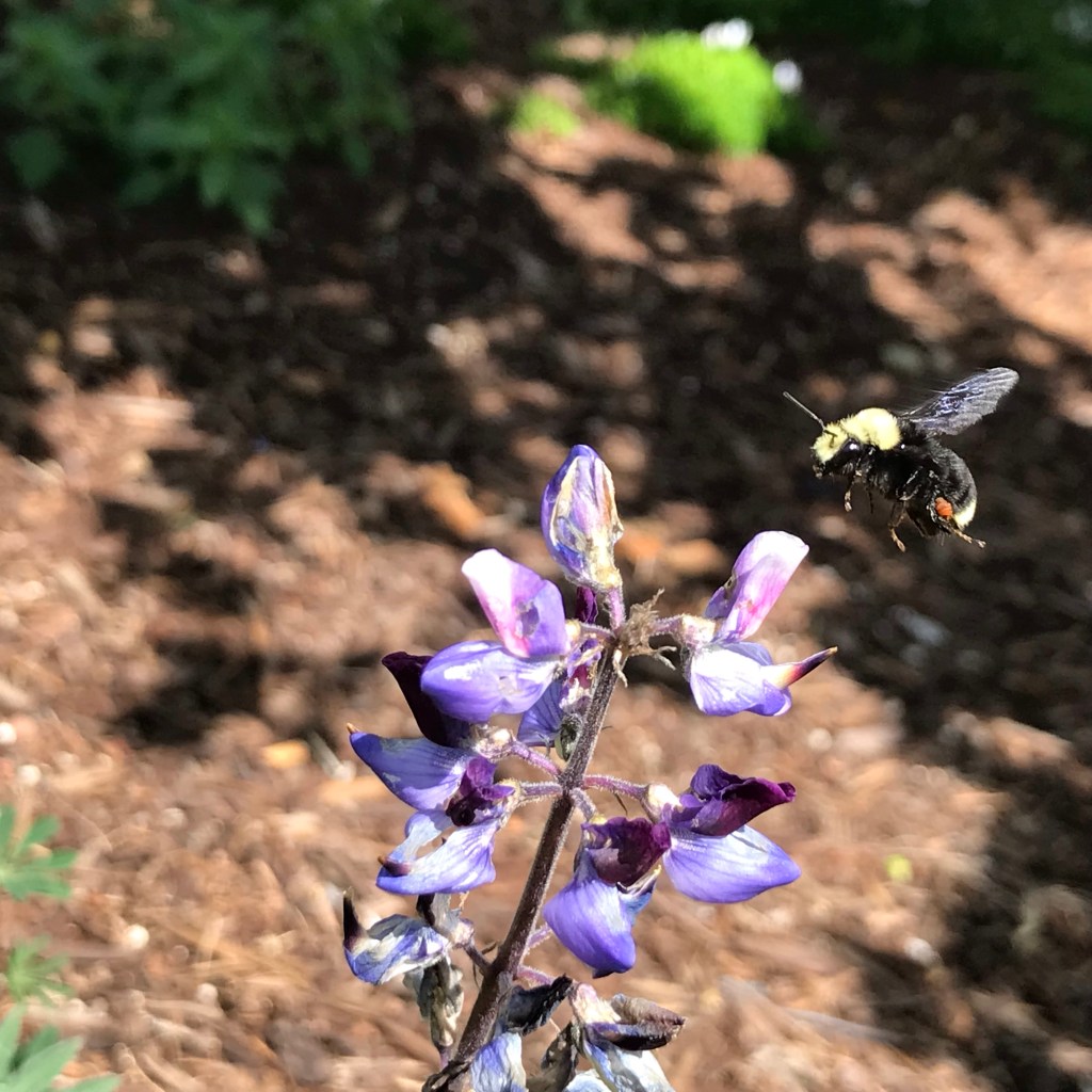Bumble bee visiting lupines.
