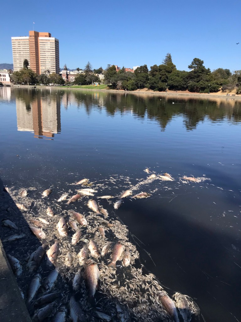 More and more fish keep dying due to the ongoing Heterosigma akashiwo algae bloom in Oakland’s downtown lake. This species of algae has produced toxic blooms in other places along the Pacific coast before.