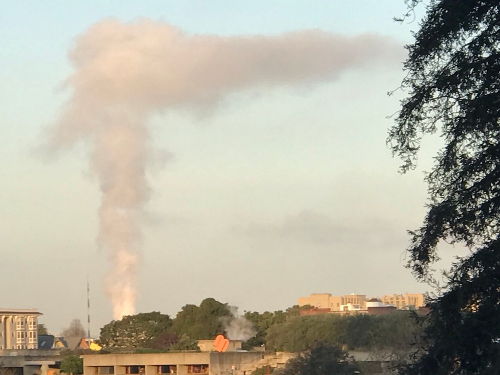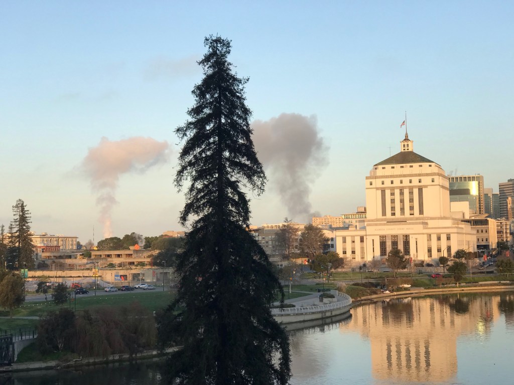 This morning not one but two mushrooms of smoke are rising over Oakland. The smoke from one is darker than the other.